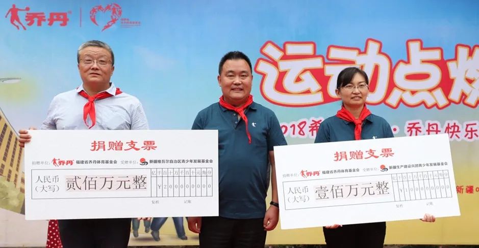 “希望工程·乐玩乔丹快乐体育基金”向福建省青少年发展基金会捐赠400万元用于在福建援建希望小学、捐助校园体育设施,开展体育活动等项目。
